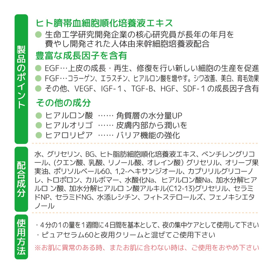 ・ピュアセラム60と夜用クリームと混ぜてご使用下さい。 ※お肌に異常がある時、またはお肌に合わない時はご使用をお辞め下さい